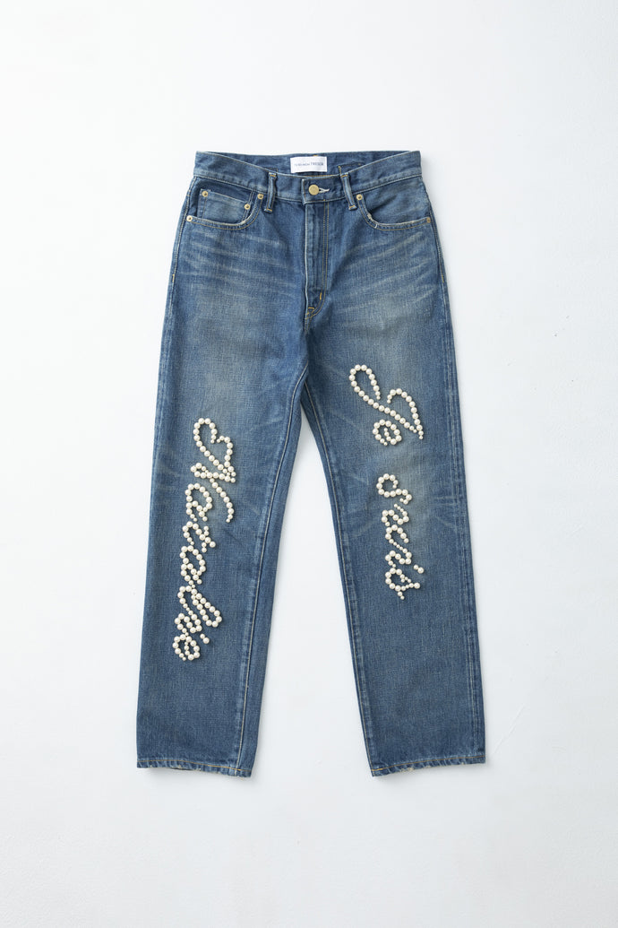 The Diamond Jean is inspired by 1940s blue jeans crafted from rigid, selvedge denim woven from hand-collected Zimbabwean cotton with using a vintage loom. This style is carefully faded and whiskered by hand achieving a coveted worn-in effect. They have a straight-leg, boyfriend-fit silhouette and high-rise waist detailed with signature luxurious gold plated buttons and a custom buttonhole stitch in diamond.