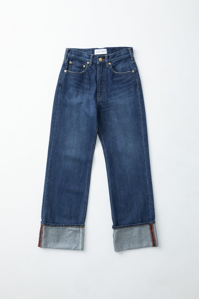 The Carnelian Jean is a playful update on our classic straight-leg boyfriend-fit jeans. This high-rise silhouette creates a fresh proportion with boldly rolled hems. Hidden stitches along the hem folds make for a perfect roll and sit elegantly over slingback pumps or ankle boots. Each hand-finished pair is detailed with signature luxurious gold plated buttons and a custom buttonhole stitch in carnelian.